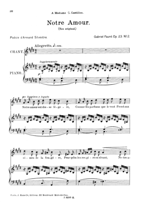 Notre amour Op.23 No.2 - Sheet Music for High Voice and Piano Gabriel Fauré