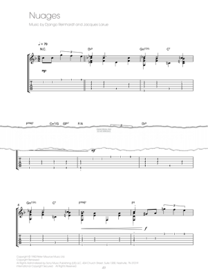 Nuages by Django Reinhardt arranged for intermediate solo acoustic guitar, in digital sheet music format.
