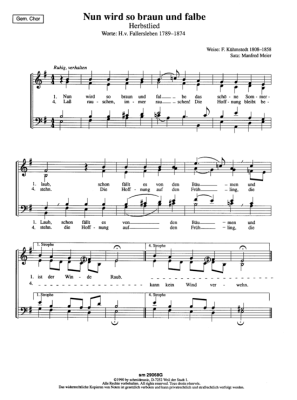 Nun wird es braun und falbe - Sheet Music for mixed choir Herbstlied