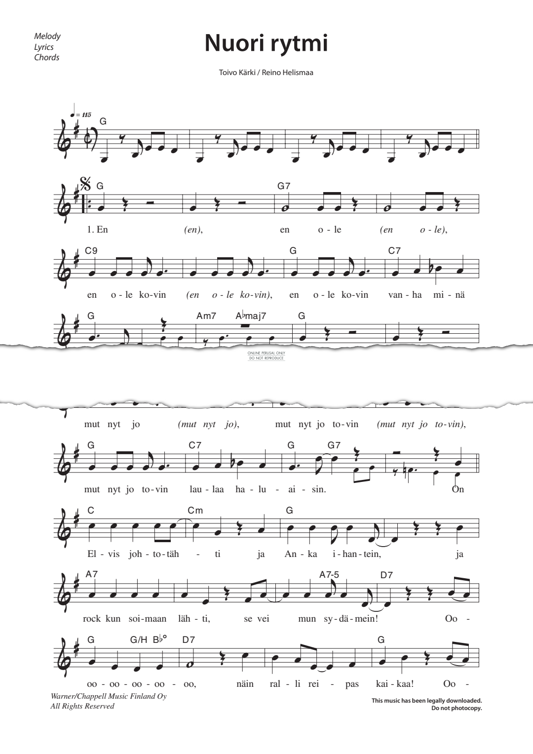 Nuori rytmi - Sheet Music for Vesa Enne