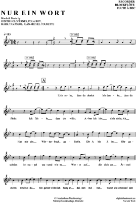 Nur ein Wort - Sheet Music for recorder Wir sind Helden