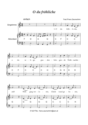O du fröhliche - Sheet Music for Accordion and vocals Traditional
