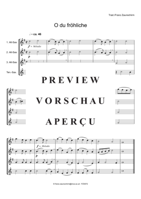 O du fröhliche - Sheet Music for Saxophone Quartet AAAT Zaunschirm, Franz