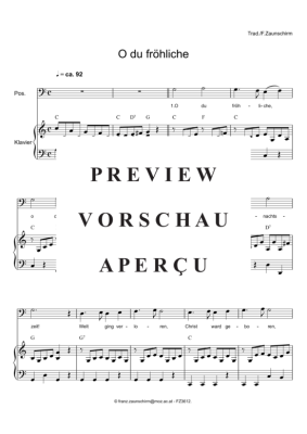 O du fröhliche - Sheet Music for Posaune + Klavier Zaunschirm, Franz