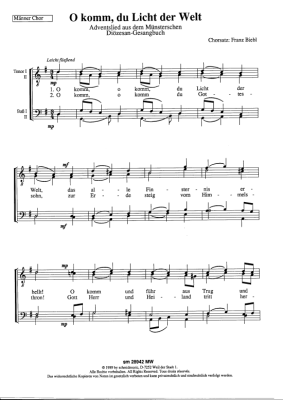 O komm, du Licht der Welt - Sheet Music for male choir Adventslied (bearb. Franz Biebl)