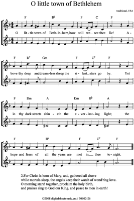 O little town of Bethlehem - Sheet Music for Recorder Duet Weihnachtslied (sehr einfach)