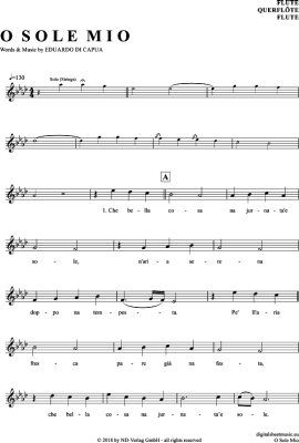 O Sole Mio - Sheet Music for transverse flute Luciano Pavarotti