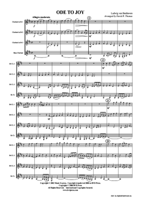 Ode an die Freude - Sheet Music for 3x clarinet in B flat, bass clarinet Ludwig van Beethoven (arr. Thomas)