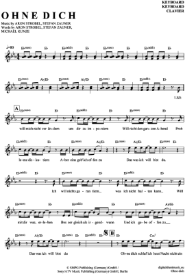 Ohne dich - Sheet Music for Keyboard Münchener Freiheit