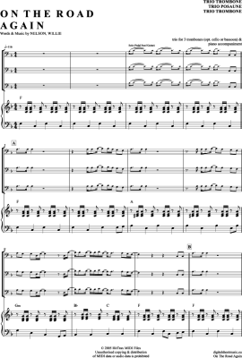 On The Road Again - Sheet Music for Trombone Trio + Piano Willie Nelson