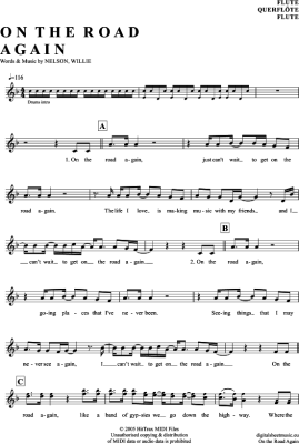 On The Road Again - Sheet Music for transverse flute Willie Nelson