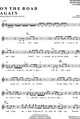 On The Road Again - Sheet Music for Keyboard Willie Nelson
