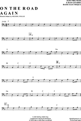 On The Road Again - Sheet Music for Bass Guitar Willie Nelson