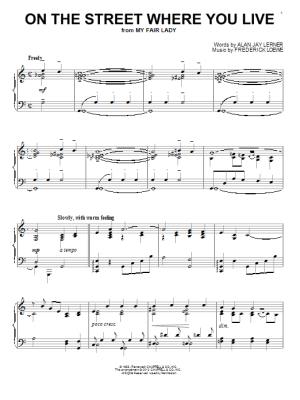 On The Street Where You Live - Sheet Music for Frederick Loewe