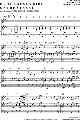 On The Sunny Side Of The Street - Sheet Music for piano + melody Jim McHugh