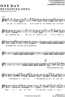 One day - Reckoning Song - Sheet Music for Alto Saxophone Asaf Avidan