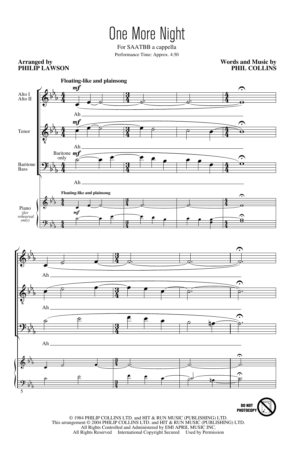 One More Night (arr. Philip Lawson) (SATB Choir)