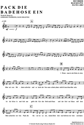 Pack die Badehose ein - Sheet Music for recorder Conni Froboess