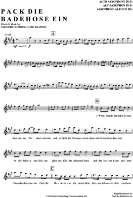 Pack die Badehose ein - Sheet Music for Alto Saxophone Conni Froboess