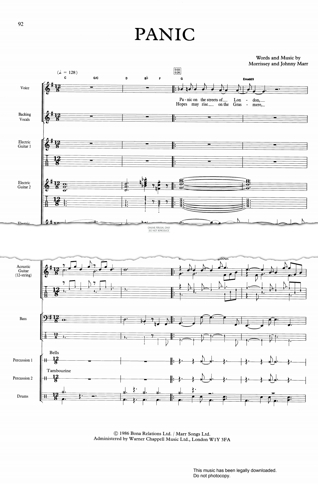 Panic as performed by The Smiths arranged as an Off The Record score.
