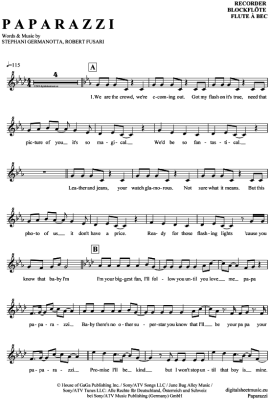 Paparazzi - Sheet Music for recorder Lady GaGa