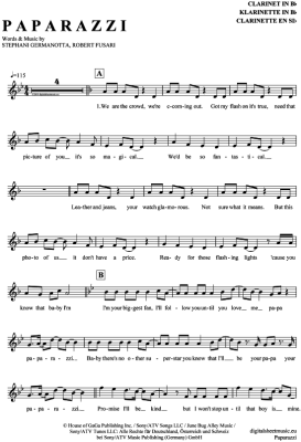 Paparazzi - Sheet Music for Clarinet in B-flat Lady GaGa