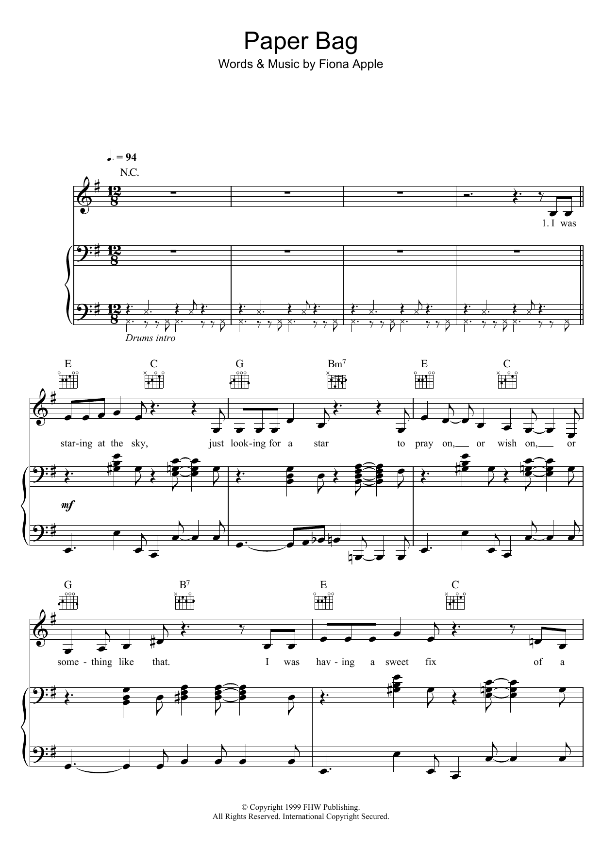 Paper Bag (Piano, Vocal & Guitar Chords)