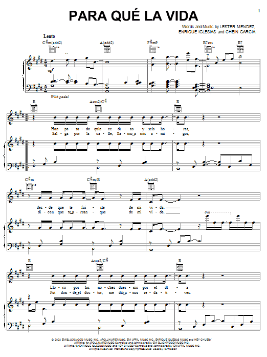Para Qué La Vida (Piano, Vocal & Guitar Chords (Right-Hand Melody))
