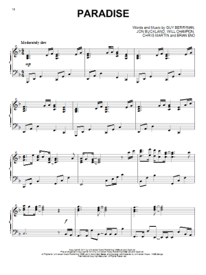 Paradise - Sheet Music for Coldplay
