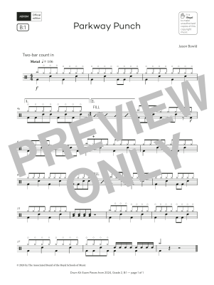 Parkway Punch (Grade 2, list B1, from the ABRSM Drum Kit Syllabus 2024) - Sheet Music for Jason Bowld