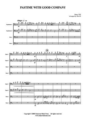 Pastime with Good Company - Sheet Music for Tuba Quartet: 2x Baritone, 2xTuba Henry VIII