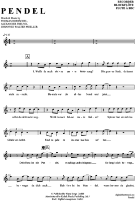 Pendel - Sheet Music for recorder Yvonne Catterfeld