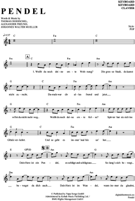 Pendel - Sheet Music for Keyboard Yvonne Catterfeld