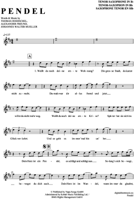 Pendel - Sheet Music for Tenor Saxophone Yvonne Catterfeld