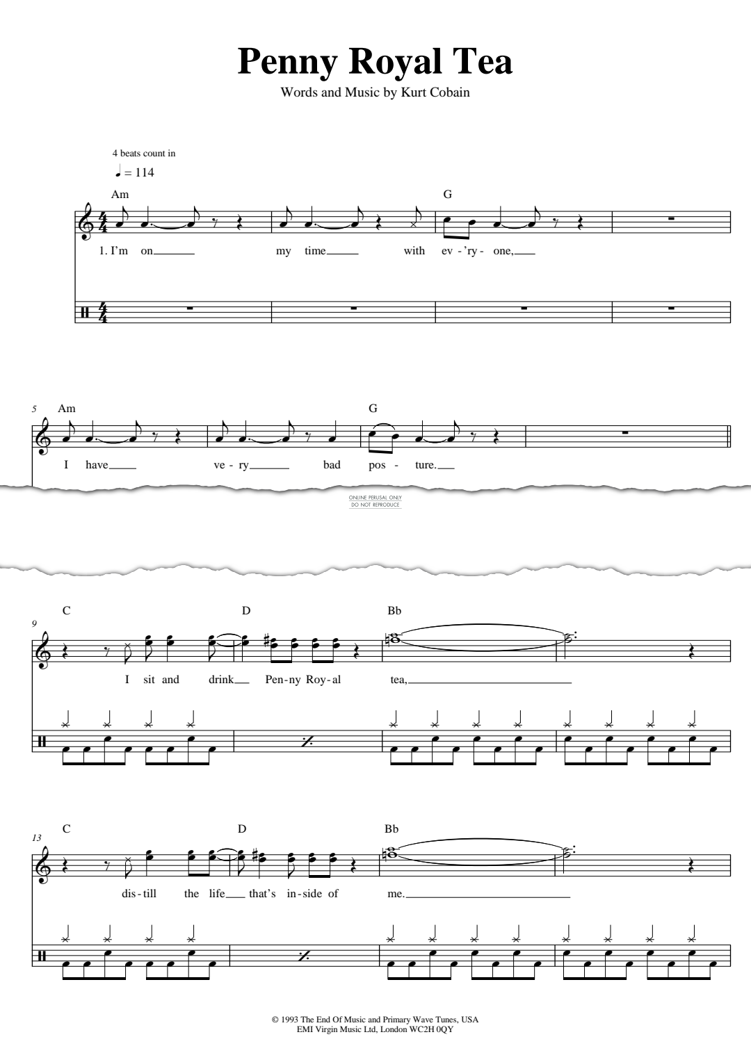 Penny Royal Tea - Sheet Music for Nirvana