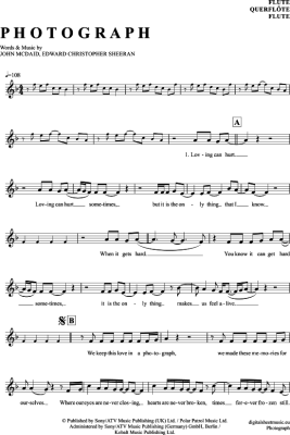 Photograph - Sheet Music for transverse flute Ed Sheeran