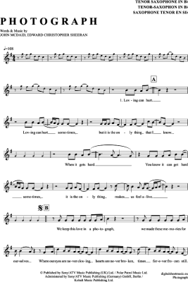 Photograph - Sheet Music for Tenor Saxophone Ed Sheeran