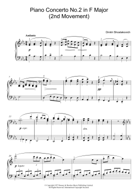 Piano Concerto No. 2 in F Major (2nd Movement) - Sheet Music for Dmitri Shostakovich