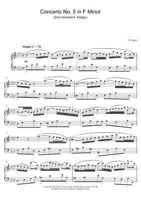 Piano Concerto No. 5 in F Minor (2nd movement: Adagio) - Sheet Music for Johann Sebastian Bach