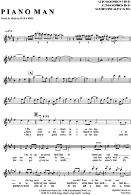 Piano Man - Sheet Music for Alto Saxophone Billy Joel