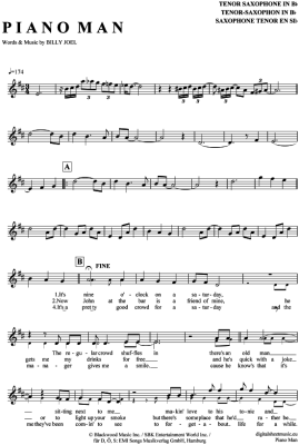 Piano Man - Sheet Music for Tenor Saxophone Billy Joel
