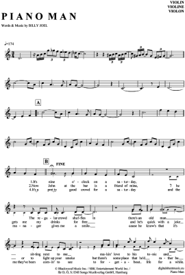 Piano Man - Sheet Music for violin Billy Joel