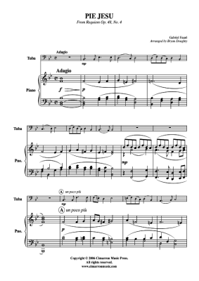 Pie Jesu, from Requiem Op. 48, No 4 - Sheet Music for tuba + piano Gabriel Faure