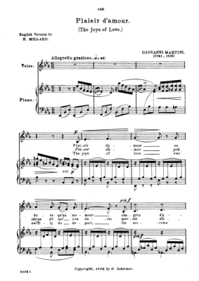 Plaisir d'amour - Sheet Music for Low Voice and Piano Giovanni Martini