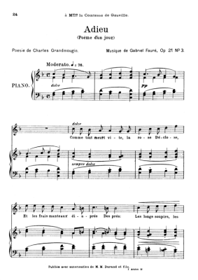 Poème d'un jour (Adieu) Op.21 No.3 - Sheet Music for High Voice and Piano Gabriel Fauré
