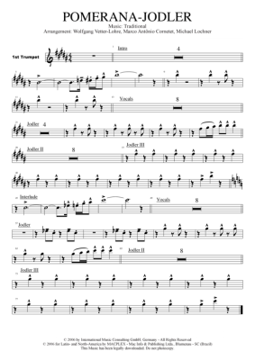 Pomerana Jodler - Sheet Music for Combo + 6 Horns Marco Antonio Cornetet (Banda Pomerana)