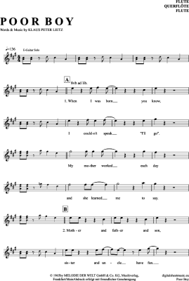 Poor Boy - Sheet Music for transverse flute The Lords