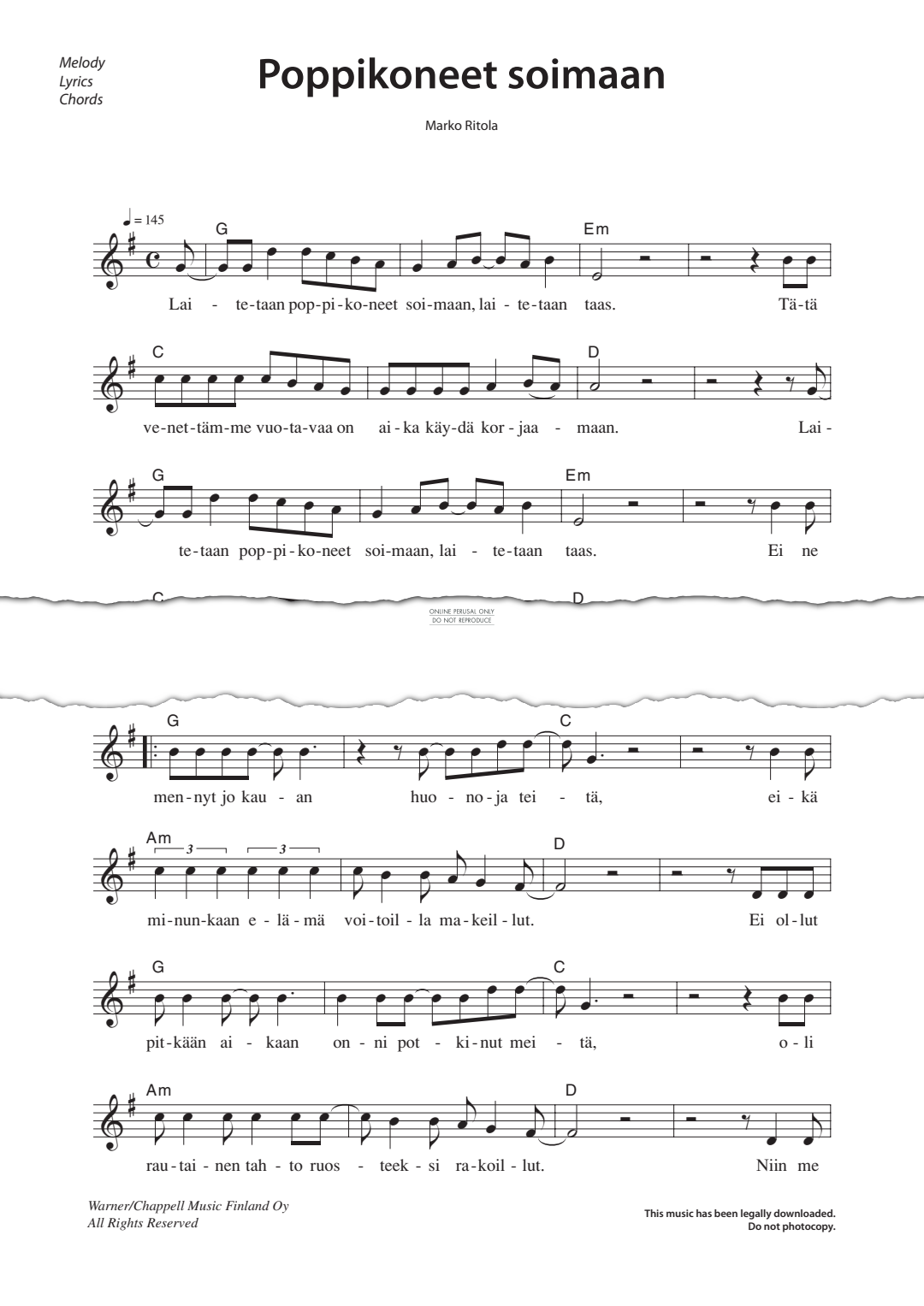 Poppikoneet soimaan - Sheet Music for Marko Ritola