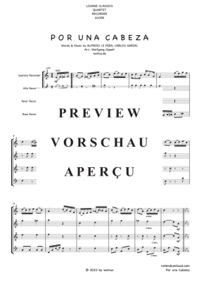 Por Una Cabeza - Sheet Music for recorder quartet SATB Carlos Gardel (arr. WO)