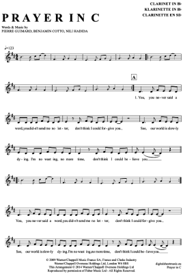 Prayer in C - Sheet Music for Clarinet in B-flat Lilly Wood & The Prick and Robin Schulz